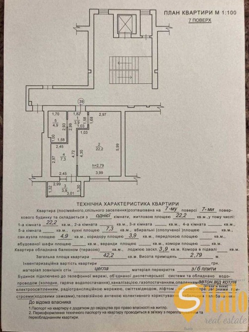 Загальна площа квртири 42,7 кв.м.