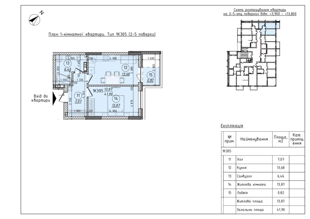 • Площа кухні 13.68 м2