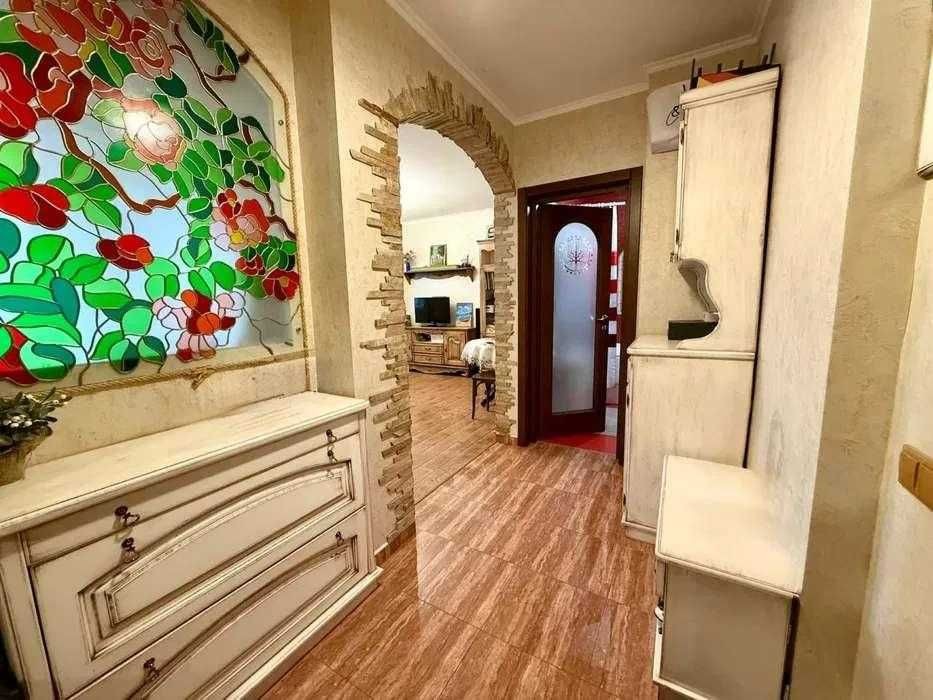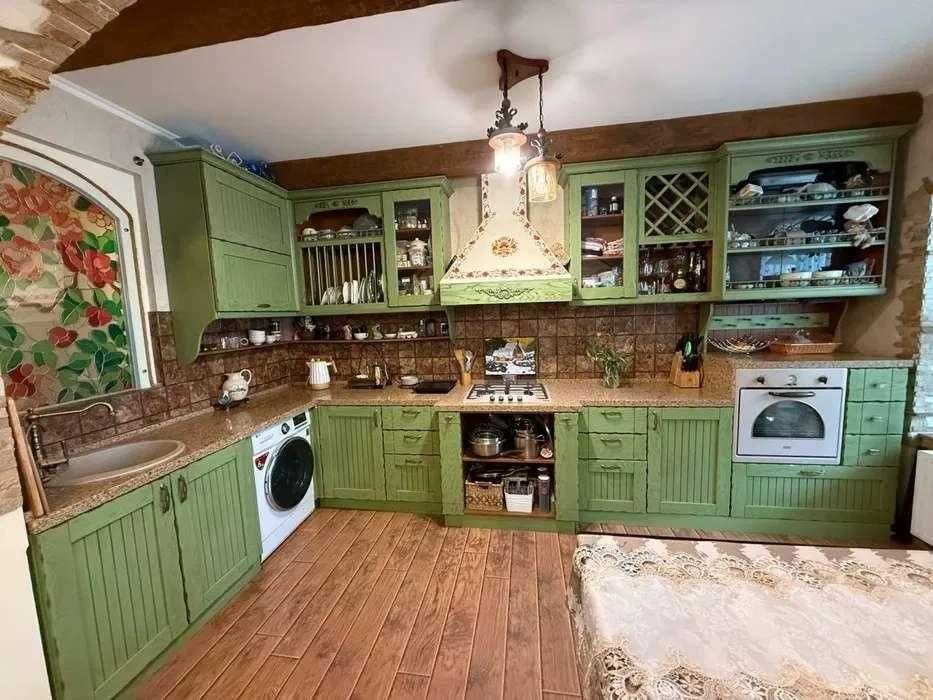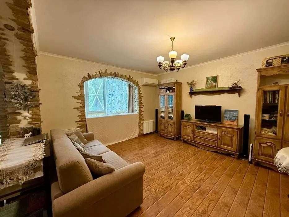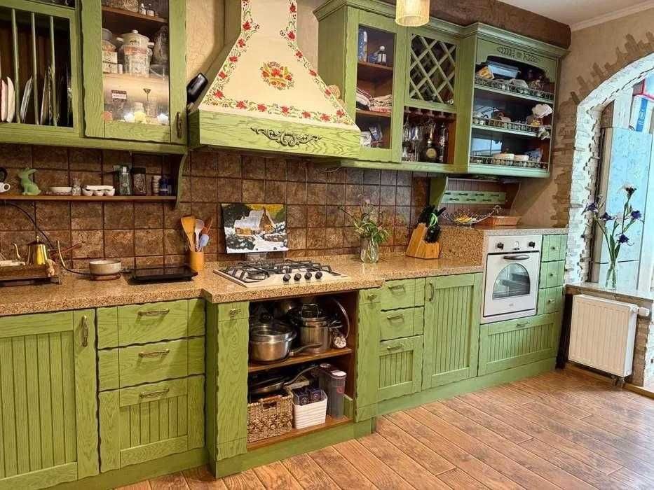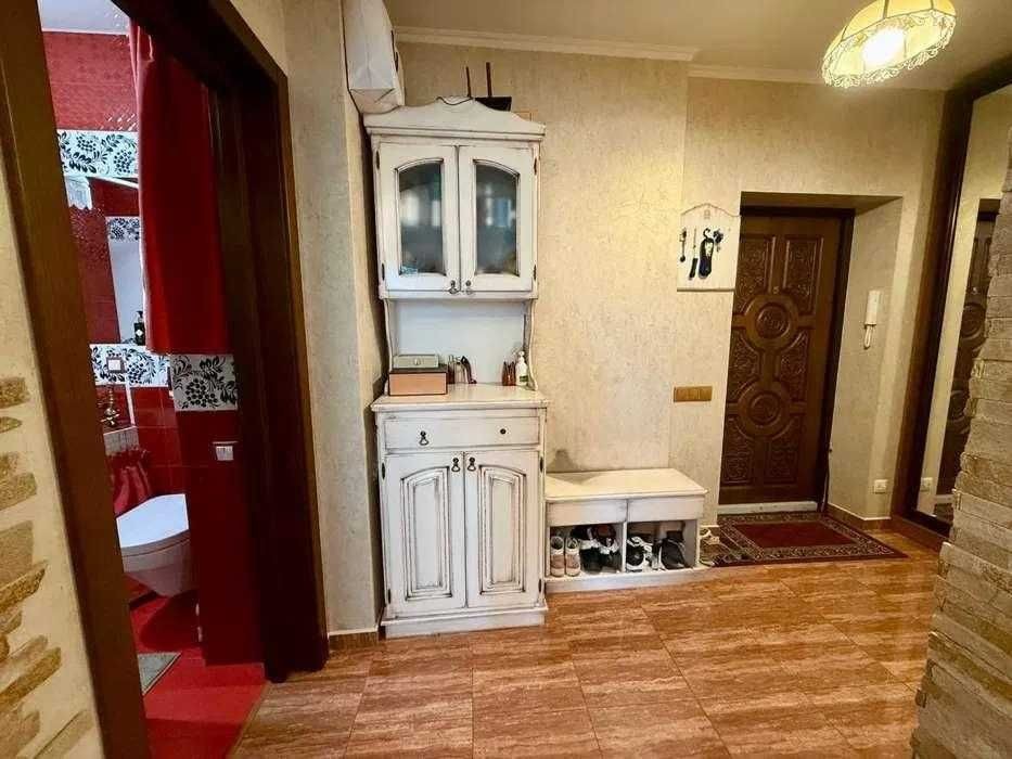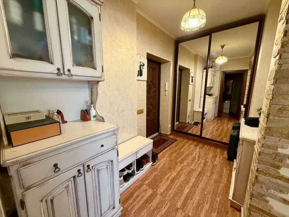 Ремонт виконаний у класичному стилі з використанням якісних матеріалів. Індивідуальний кухонний дизайн, техніка Franke. На стінах — венеціанська штукатурка, декоративні дерев’яні балки створюють атмосферу затишку. Встановлений бойлер, велика шафа-купе, броньовані вхідні двері.