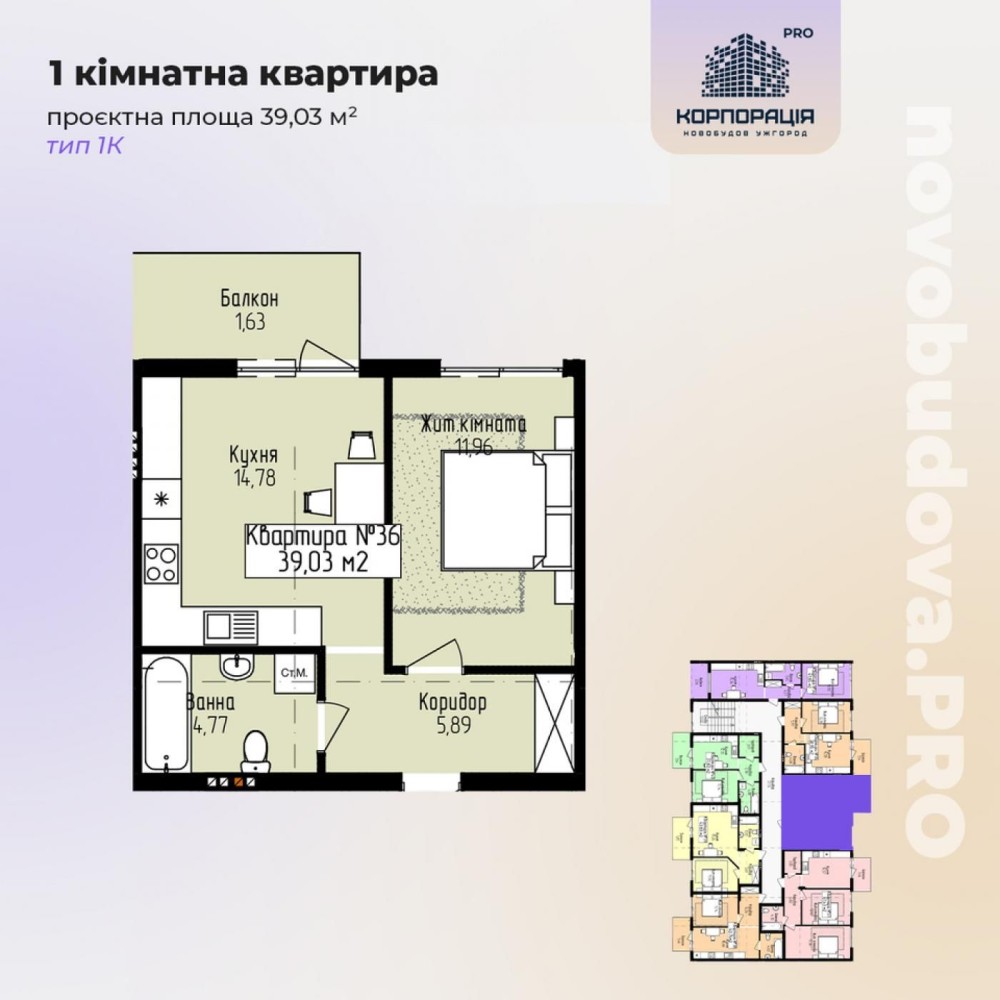 • Загальна площа 39.03 м2
