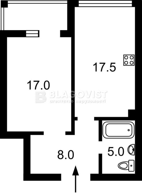 • Площа кухні 17.5 м2