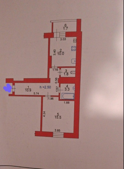 Кухня 10 м.кв.,кімната 15,5 м.кв.