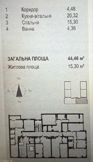 Пропонується простора та світла квартира площею 44,5 м² на 3 поверсі з 10.