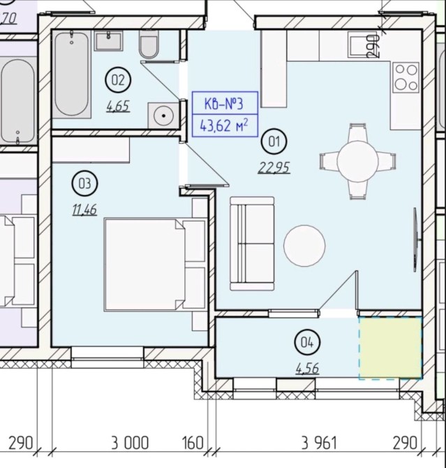 • Загальна площа 43.62 м2