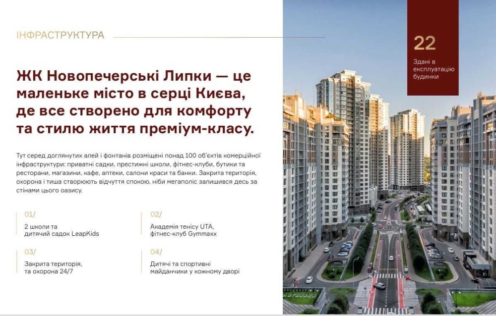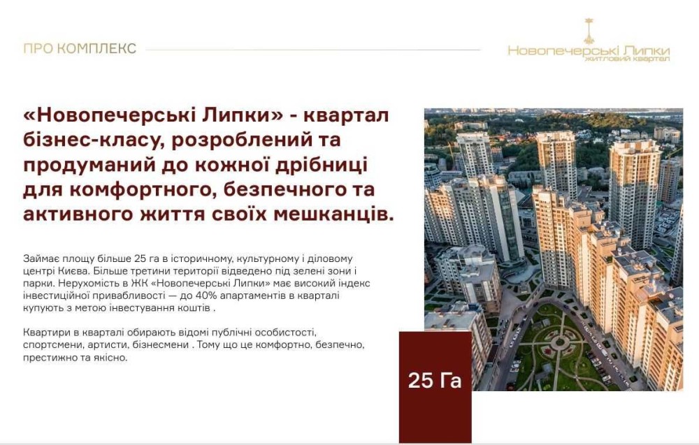 Новопечерські Липки — квартал бізнес-класу, розроблений для зручності його мешканців, з думкою про них продуманий до кожної деталі.
