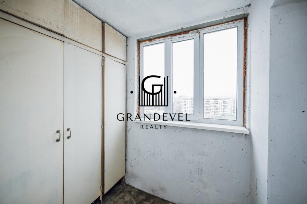 Квартира має функціональне планування: простора кухня, велика спальня кімната з двома виходами та додаткову перевагу — гардеробну кімнату.