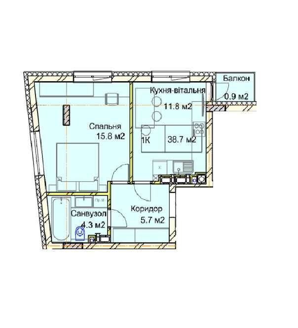 • Загальна площа 38.7 м2