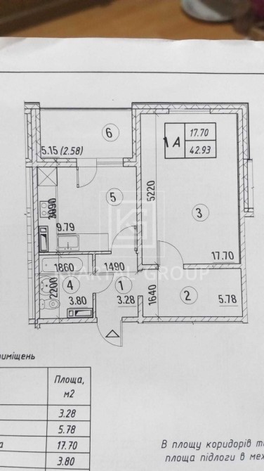 • Загальна площа 42.93 м2
