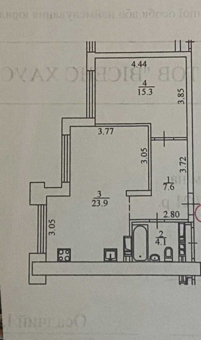 Загальна площа: 50,9м², Житлова площа - 15,3м²