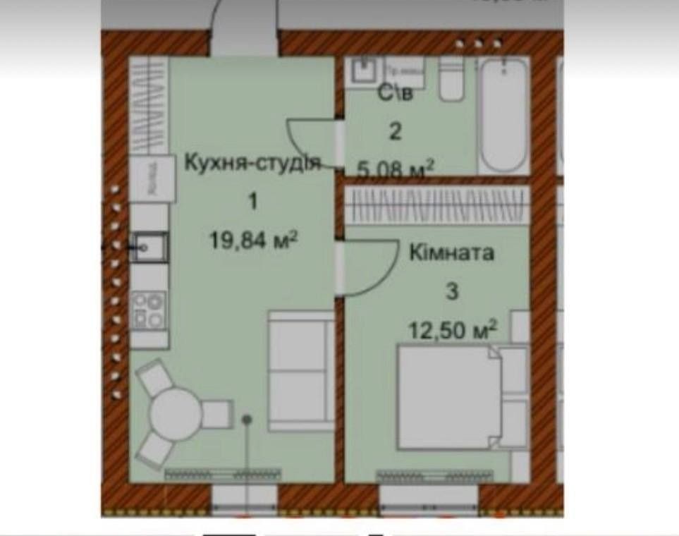 • Загальна площа 38 м2