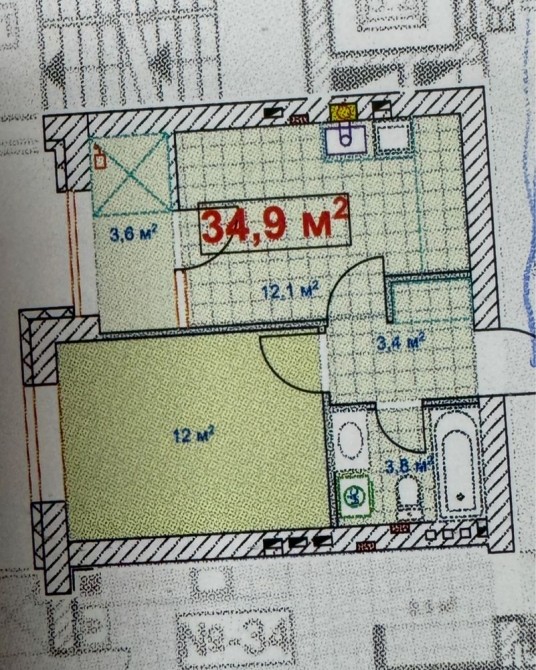 • Загальна площа 35 м2