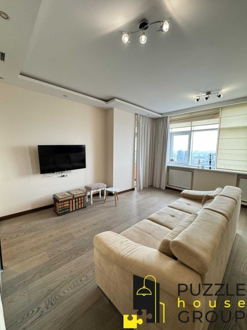 Простора та стильна квартира загальною площею 71 м² на 26 поверсі сучасного будинку з чудовим видом на спортивний комплекс «Олімпійський».