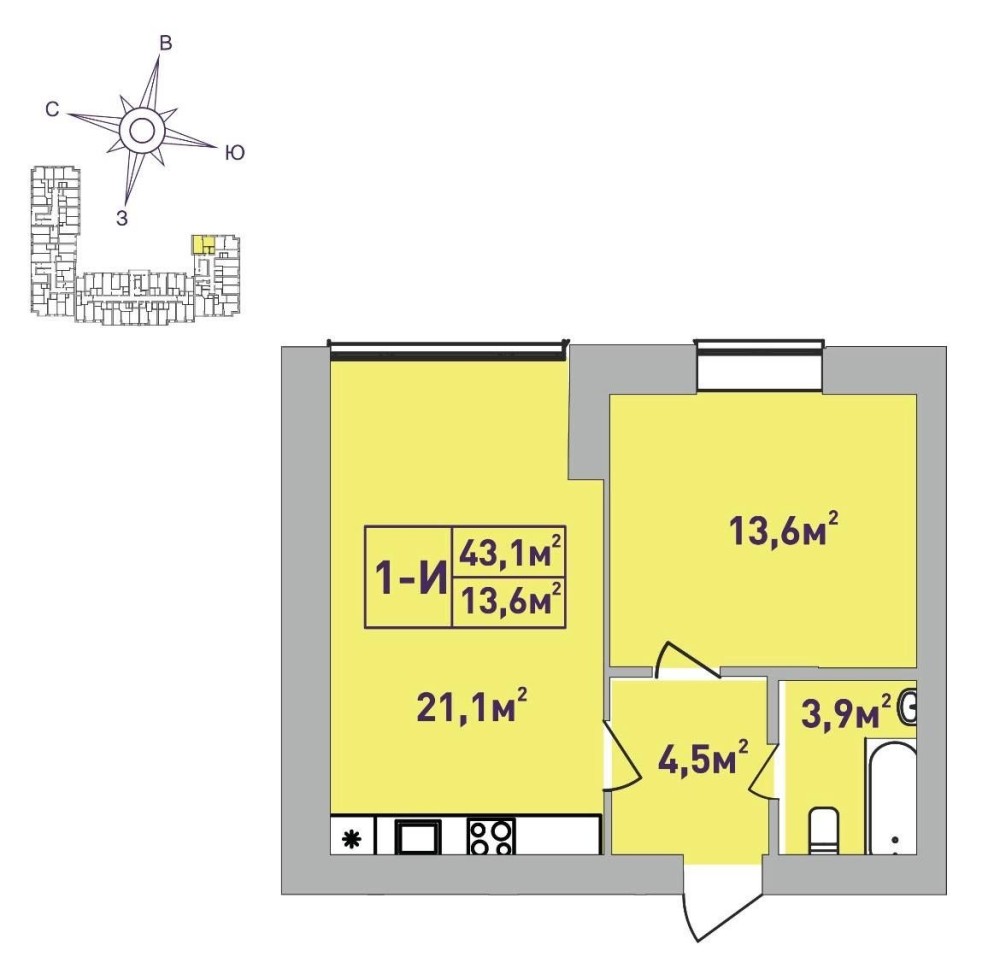 • Загальна площа 43 м2