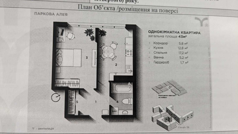 • Загальна площа 43.5 м2