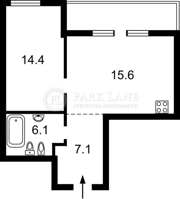 • Площа кухні 15.6 м2