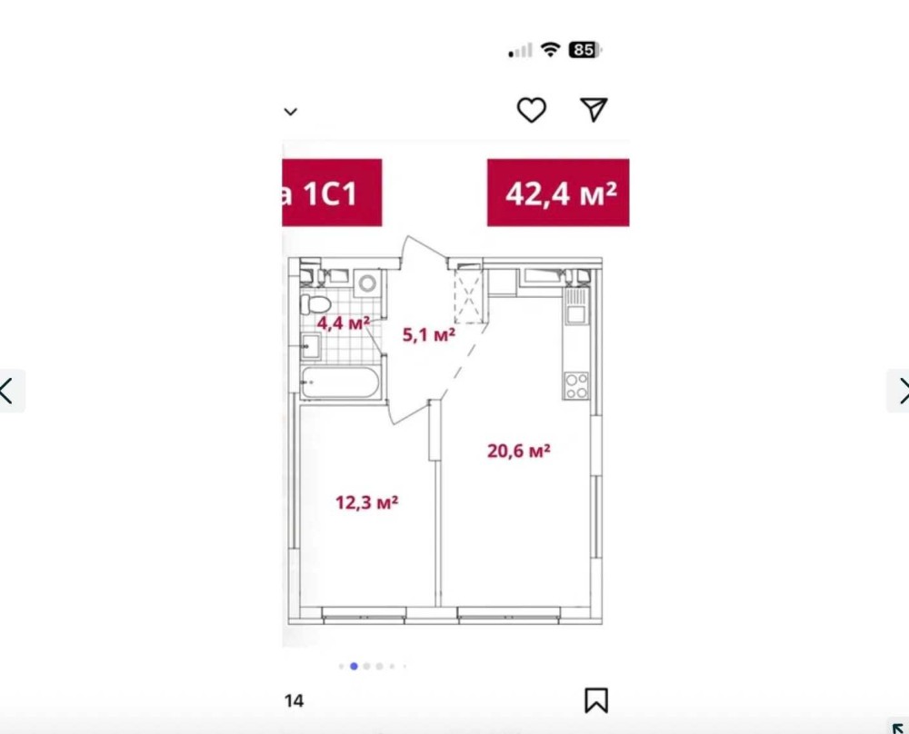 • Загальна площа 42.4 м2