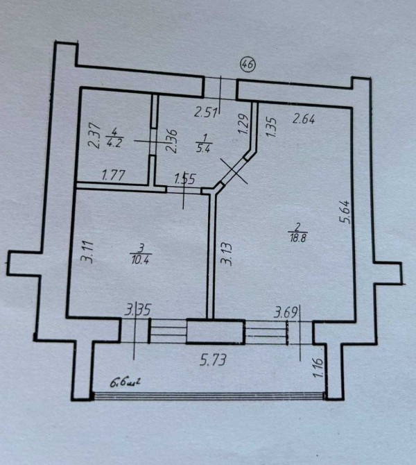 Площа — 44,6 м²