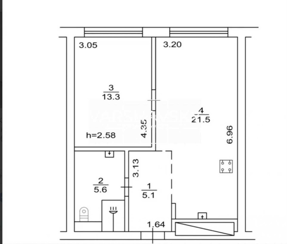 • Площа кухні 21.5 м2