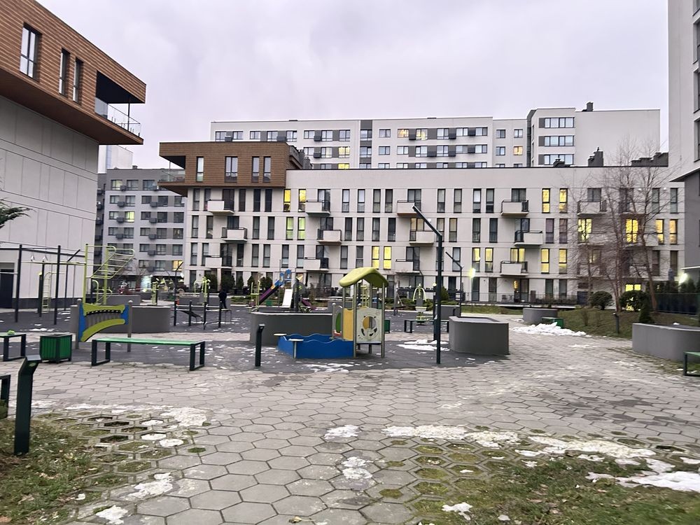 – Сучасні дитячі та спортивні майданчики, багато простору серед будинків.