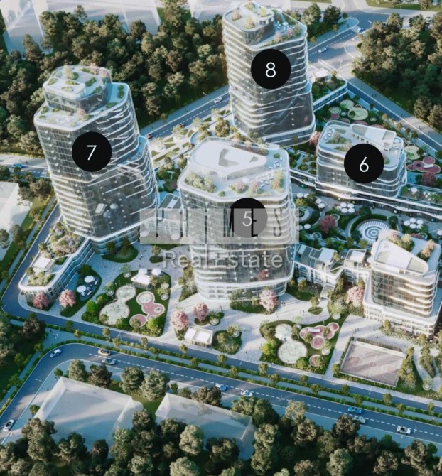 Це комплекс із 8ми будинків різного планування. 33 Сітіхаусів. 799 квартир 8-31 поверховості розташований на 1.5 Га території