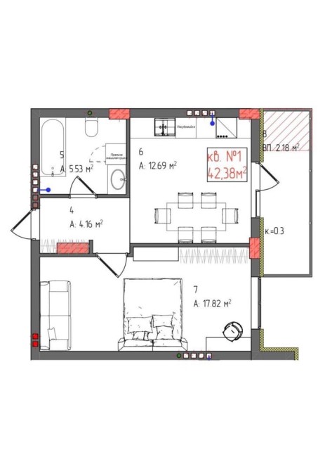 • Загальна площа 42.38 м2