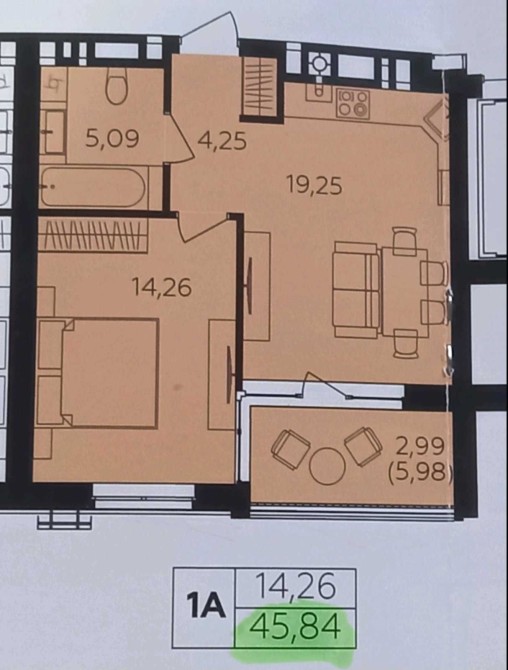 • Загальна площа 45.84 м2