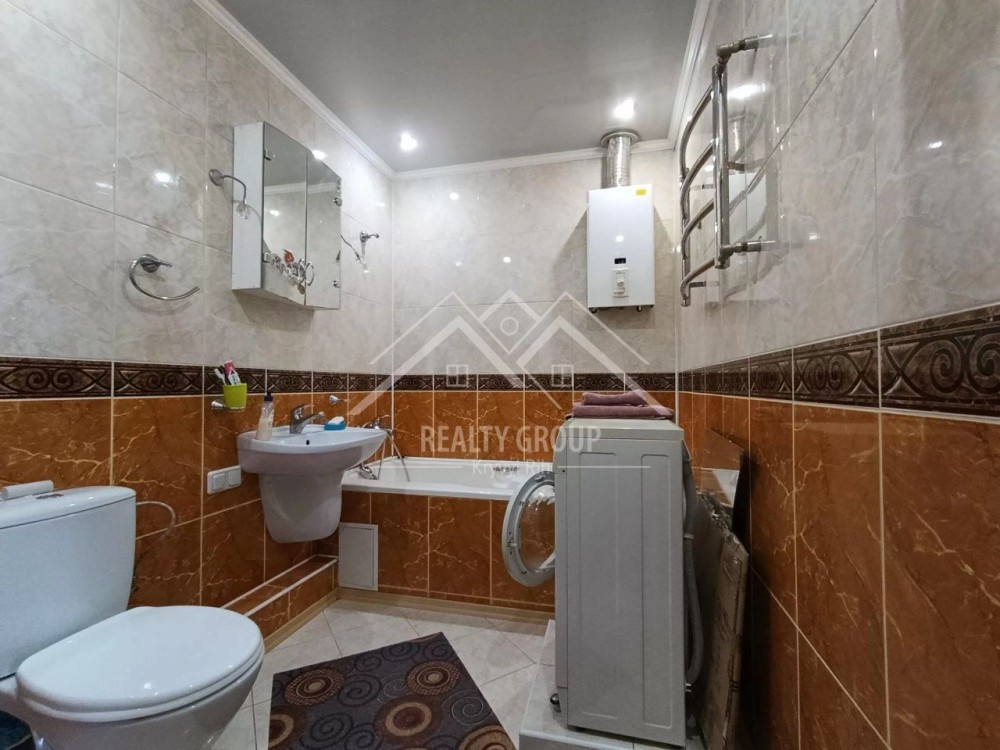 В квартирі залишаються всі меблі та техніка: телевізор-плазма, кондиціонер, вмістка шафа, величезний диван та зручне ліжко – у спальній зоні. На кухні, окрім корпусних меблів, залишаються холодильник, потужна витяжка, духова шафа та мікрохвильовка. Пральна машина та сучасна газова колонка- автомат, також залишаються новим власникам.