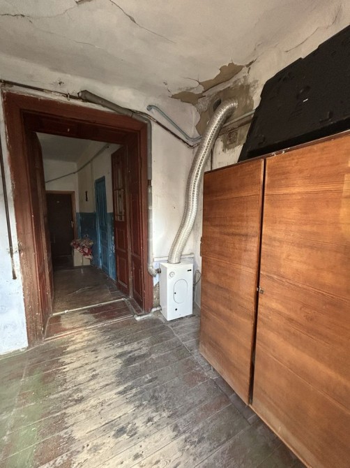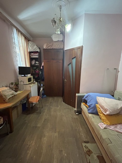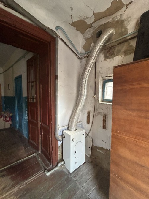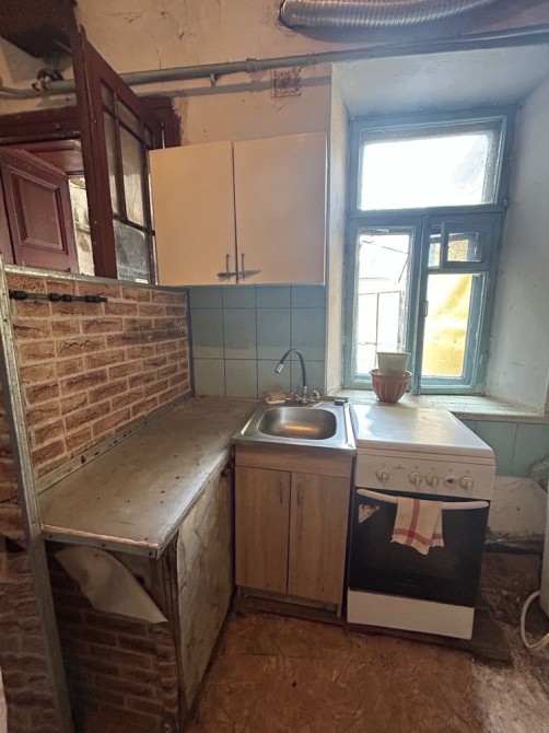 1-кімнатна квартира в центрі міста, малогабаритна, у добротному кам’яному будинку з усіма зручностями. Автономне опалення, лічильники, центральна каналізація, високі стелі. Вул. Шнеерсона–Нікольська, закритий двір. Вікна МП. Вхід через коридор на три квартири. Ніхто не проживає.