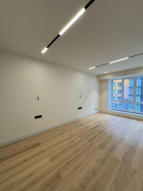 Виконано дуже якісний та стильний дизайнерський ремонт із використанням дороговартісних матеріалів. Підігрів підлоги у зонах з плиткою іспанського виробництва Travertino. У спальні — паркетна дошка Holz, МДФ-плінтус, встановлені дорогі міжкімнатні двері з фарбованим полотном.