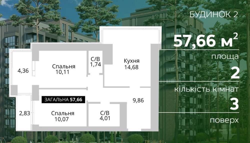 Площа - 57.66 м2