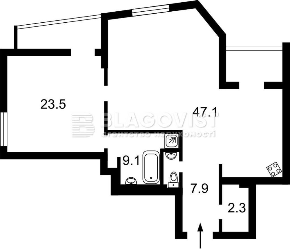• Площа кухні 47.1 м2