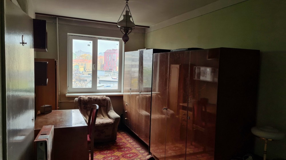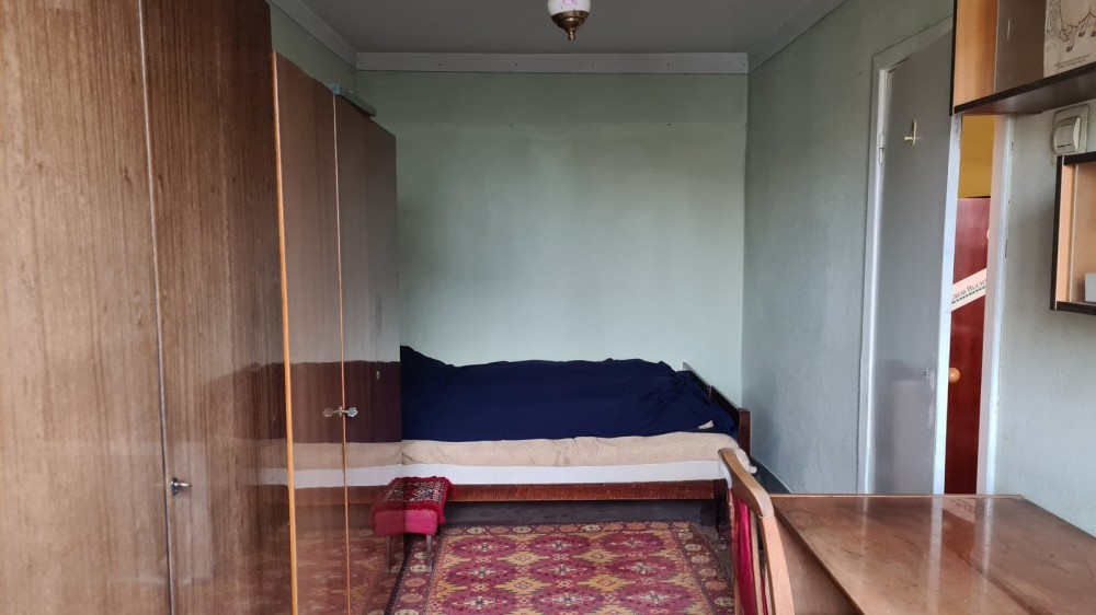 Квартира під ремонт. Опалення – централізоване, планування – кімнати суміжні, санвузол – роздільний. Вікна – на кухні та в одній кімнаті металопластикові, на балконі дерев’яні. Вихід на балкон з кімнати, є кладова. Просторий коридор.
