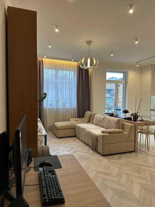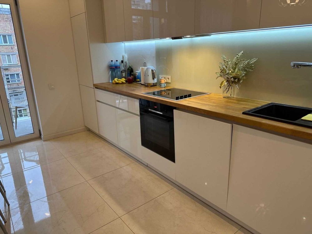 Квартира виконана у світлих, нейтральних тонах з використанням якісних натуральних матеріалів, що створює відчуття простору, свіжості та затишку. Сучасний ремонт продуманий до деталей: кожна зона гармонійно поєднує стиль та функціональність. Вбудована кухня обладнана всією необхідною побутовою технікою — усе готове для комфортного життя з першого дня.