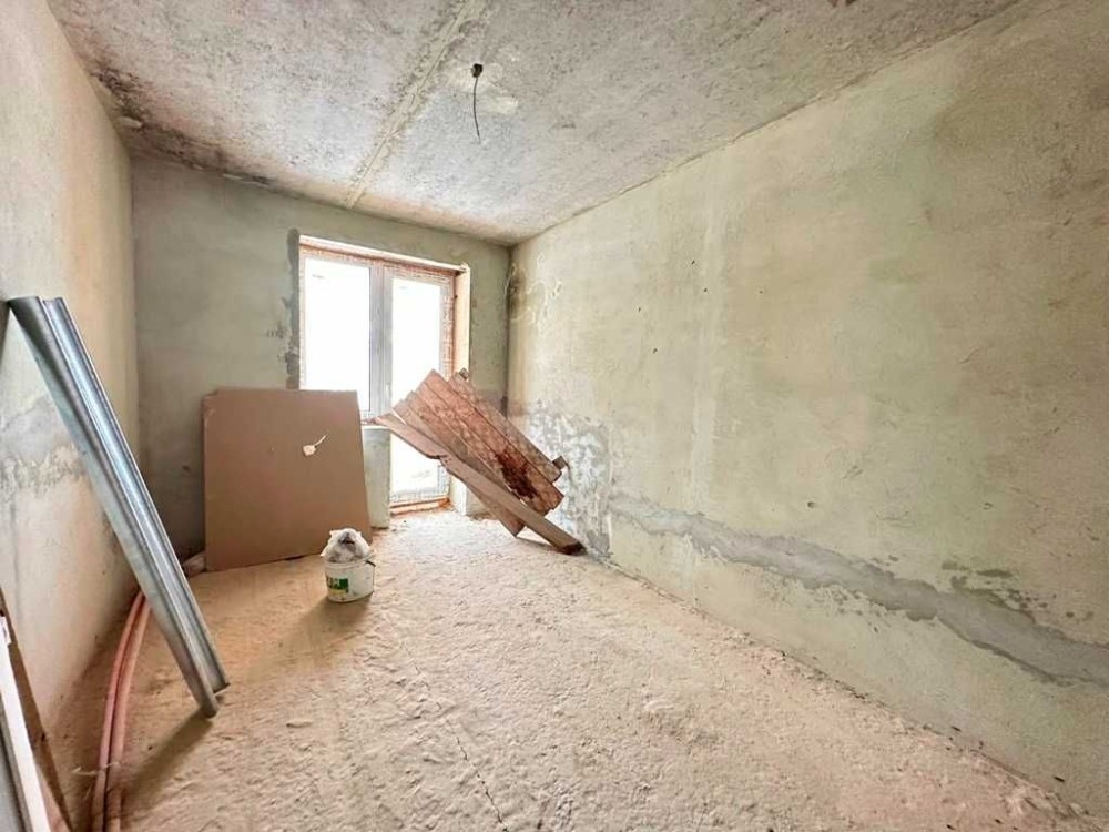 Простір для ідей: Площа 64,1 м² дозволяє реалізувати сучасне перепланування, облаштувати велику кухню-вітальню або додаткові зони зберігання (гардеробну).