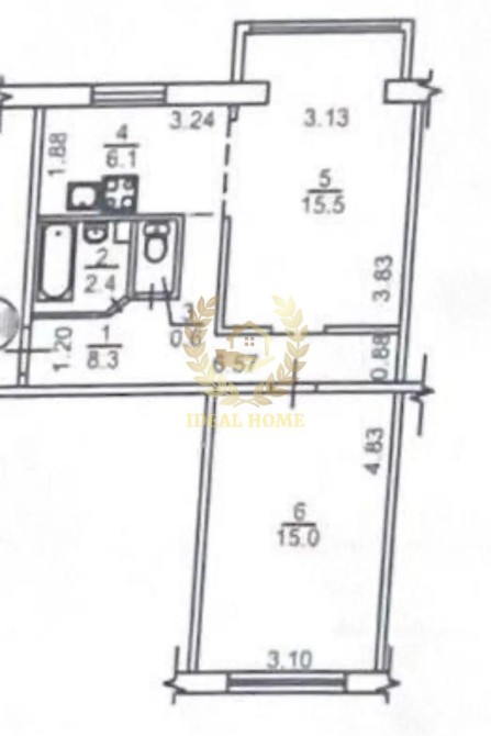 • Площа кухні 6.1 м2