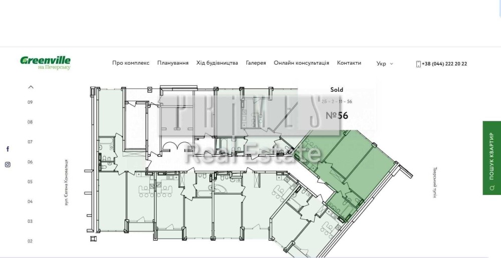 Продаж 2 к квартири 76,3 м2 в новому ЖК бізнес-класу, Greenville на Печерську
