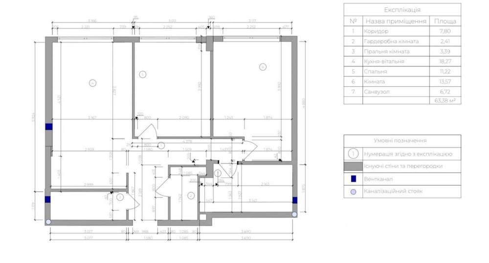 • Загальна площа 63.38 м2