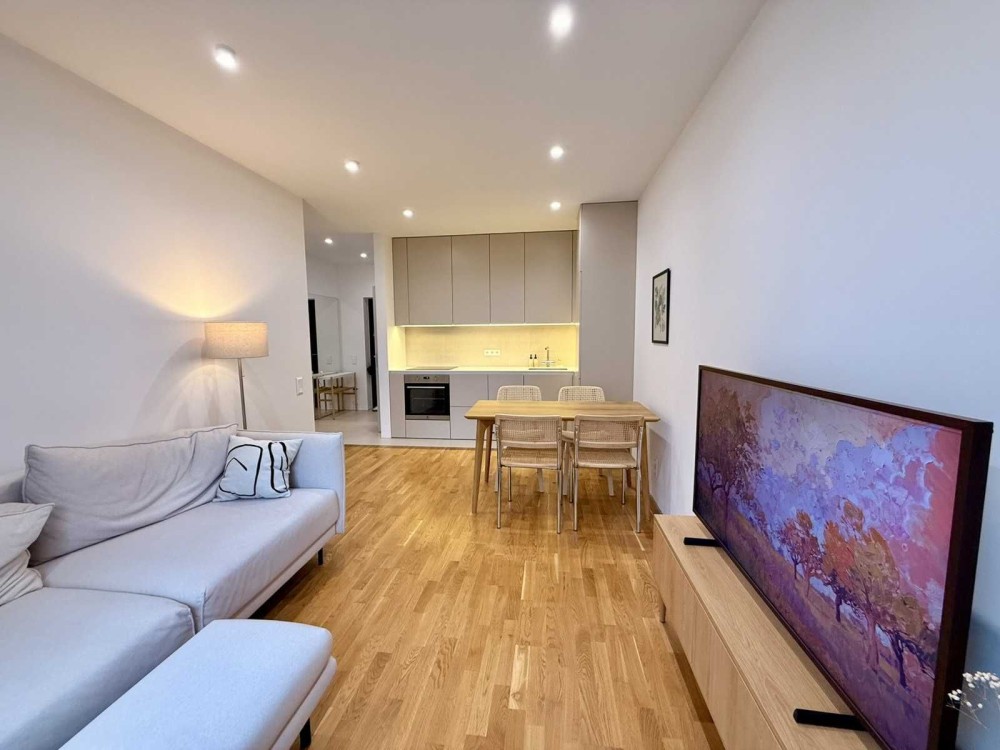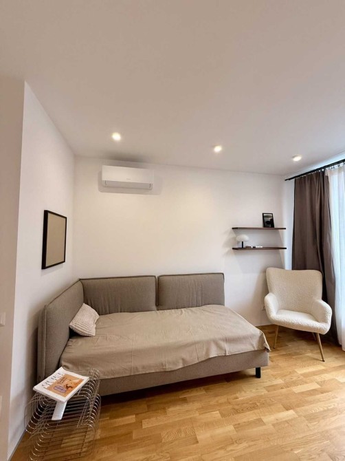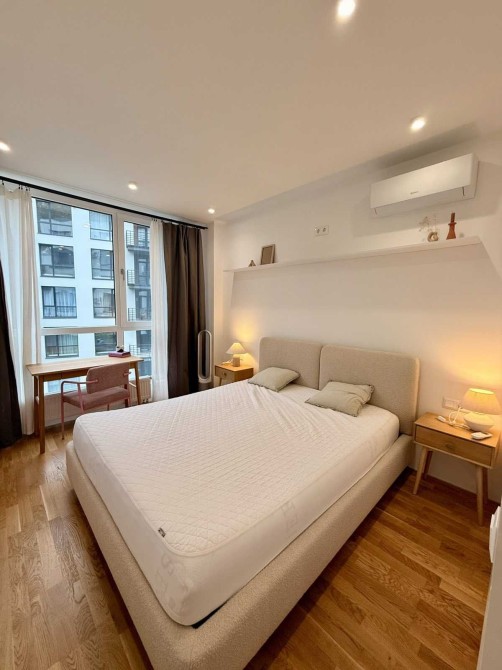 Квартира повністю оздоблена та укомплектована всіма необхідними меблями, реалізована по дизайнерському проєкту.