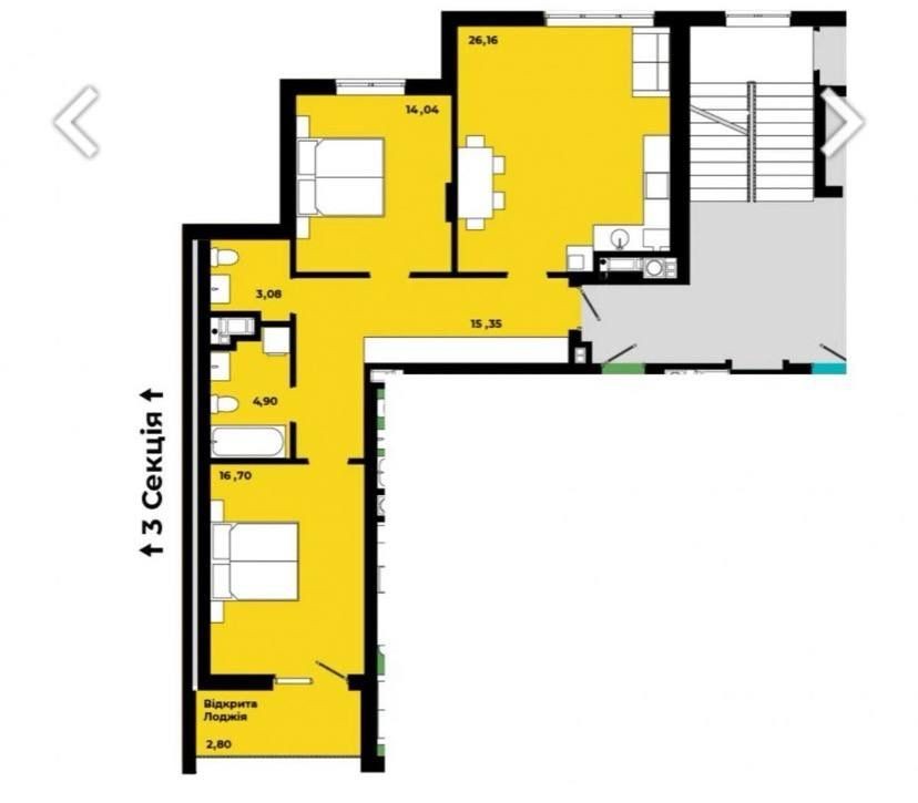 • 2 ізольовані кімнати, в одній відкрита лоджія