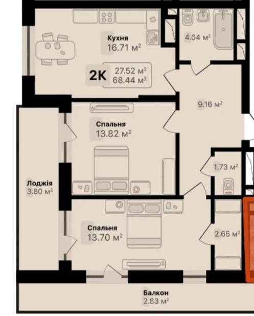 • Загальна площа 68.44 м2