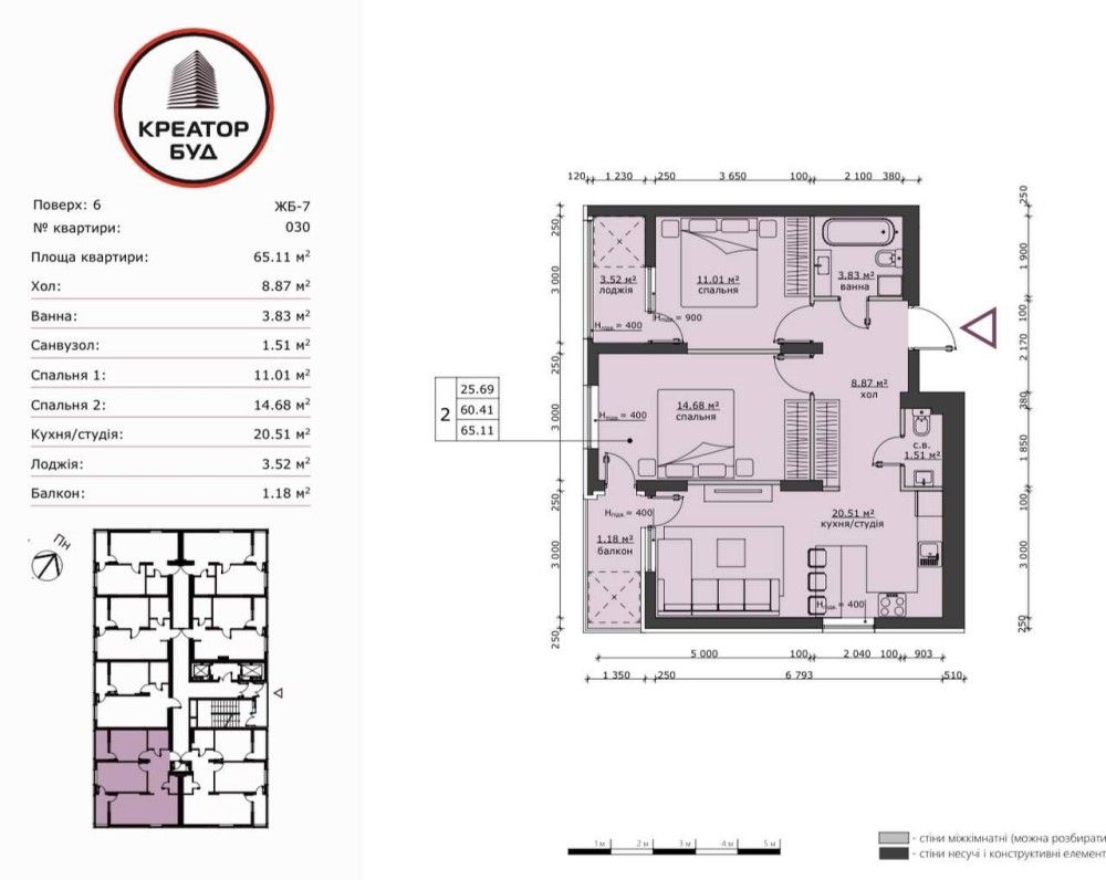 • Загальна площа 65 м2