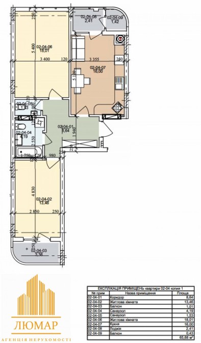 • Площа: 65,68 м²