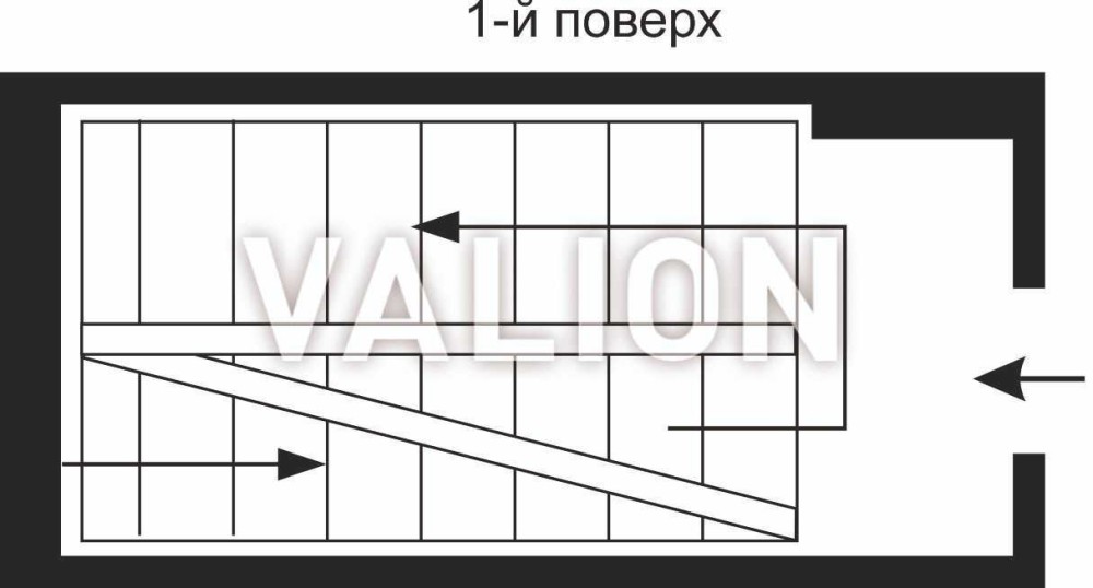 Вхідна зона з гардеробом — на першому рівні. Уся житлова частина розташована на другому рівні.