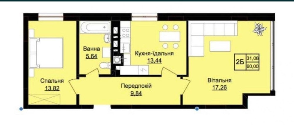 • Загальна площа 64.6 м2
