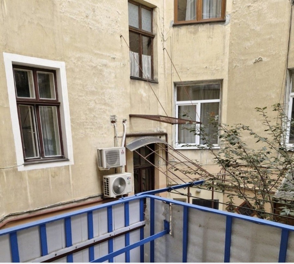 Австрійський будинок, вхід в квартиру з під'їзду, високі стелі, дві кімнати, кухня, два коридори, суміжний санвузол, є балкон і підвал.