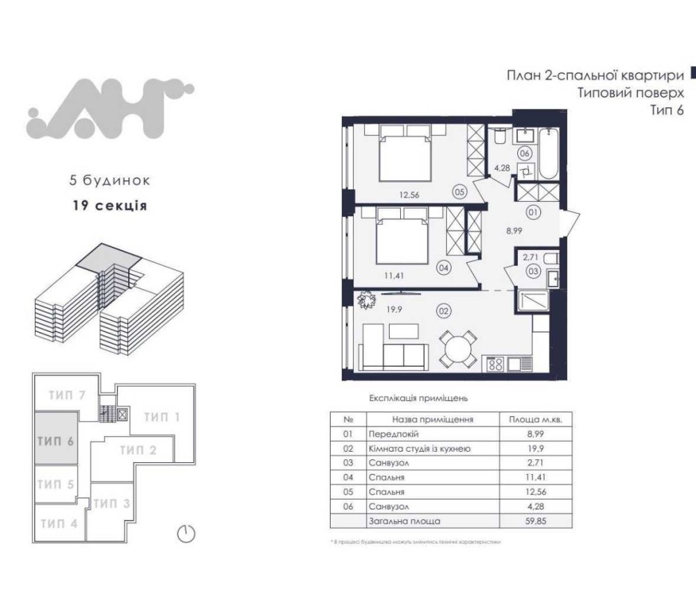 • Загальна площа 57 м2