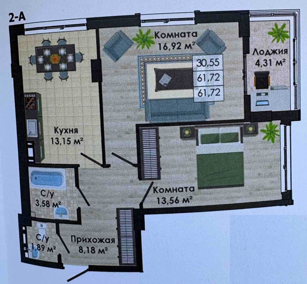 • Загальна площа 63.4 м2