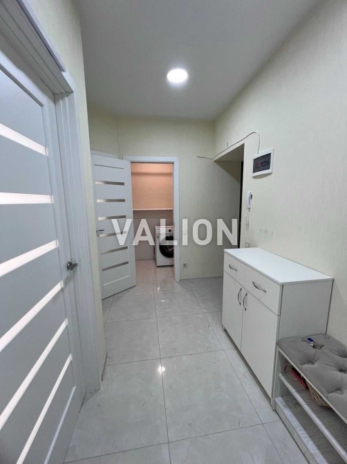 В квартирі дві окремі кімнати, кухні- вітальня, пральна кімната , санвузол суміжний. Зроблений сучасний ремонт у світлих тонах, багато місць для зберігання, 2 кондиціонери, пральна та посудомийна машини ,бойлер, холодильник, двоспальне ліжко, вбудована кухня та обідня зона, панорамні вікна по всій квартирі. В квартирі все залишається.
