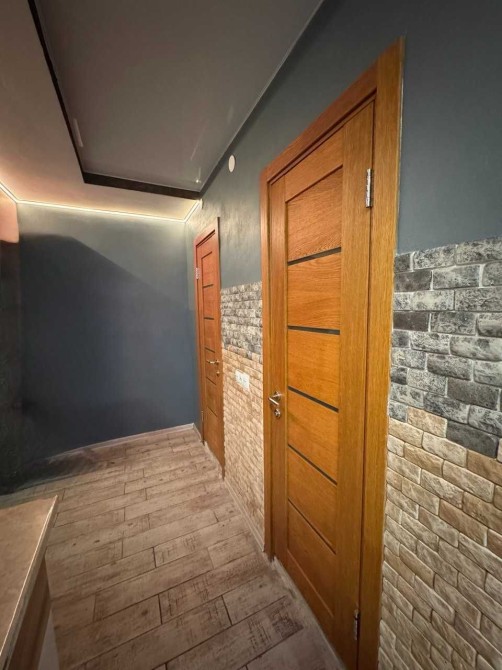 Квартира з незавершеним ремонтом. Одна кімната повністю підготовлена під ремонт, все інше з ремонтом. Всі вікна металопластикові. В кімнаті та кухні натяжні стелі, на підлозі ламінат та кахель, санвузол окремий - душова кабіна. Балкон на дві кімнати, повністю утеплений та обшитий. В квартирі залишається вбудована кухня, витяжка, посудомийна машина, бойлер, шафи та комоди.