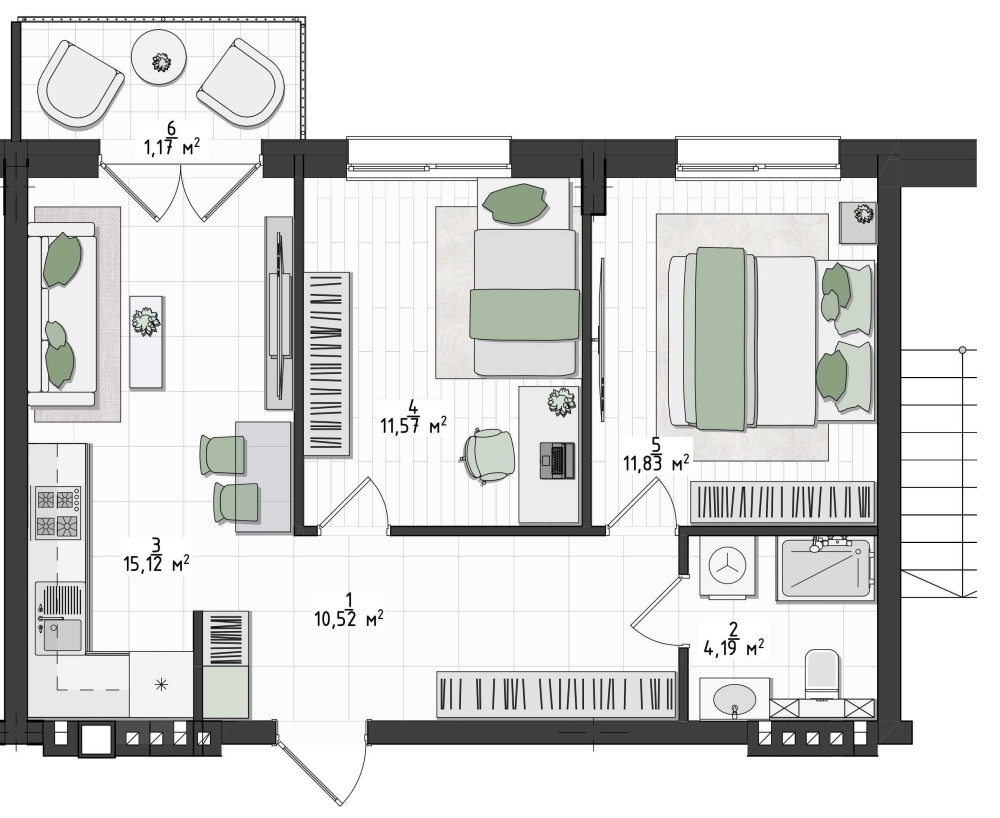• Загальна площа 54 м2